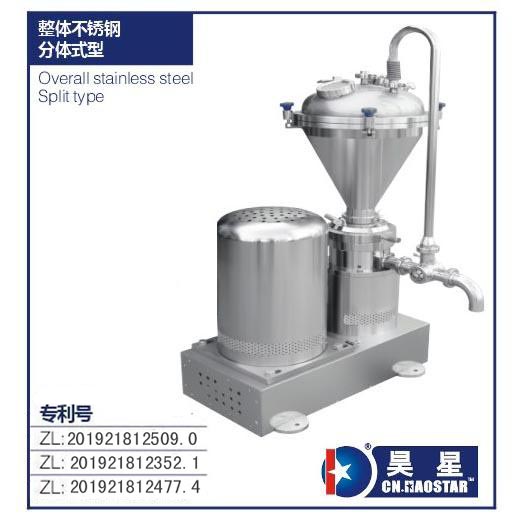 昊星分體式封閉式膠體磨colloidmill-jiaotimo配立式電動(dòng)機(jī),機(jī)體與電機(jī)連體同軸結(jié)構(gòu),故又稱傍立式膠體磨,并采取全封閉式內(nèi)循環(huán)構(gòu)造。